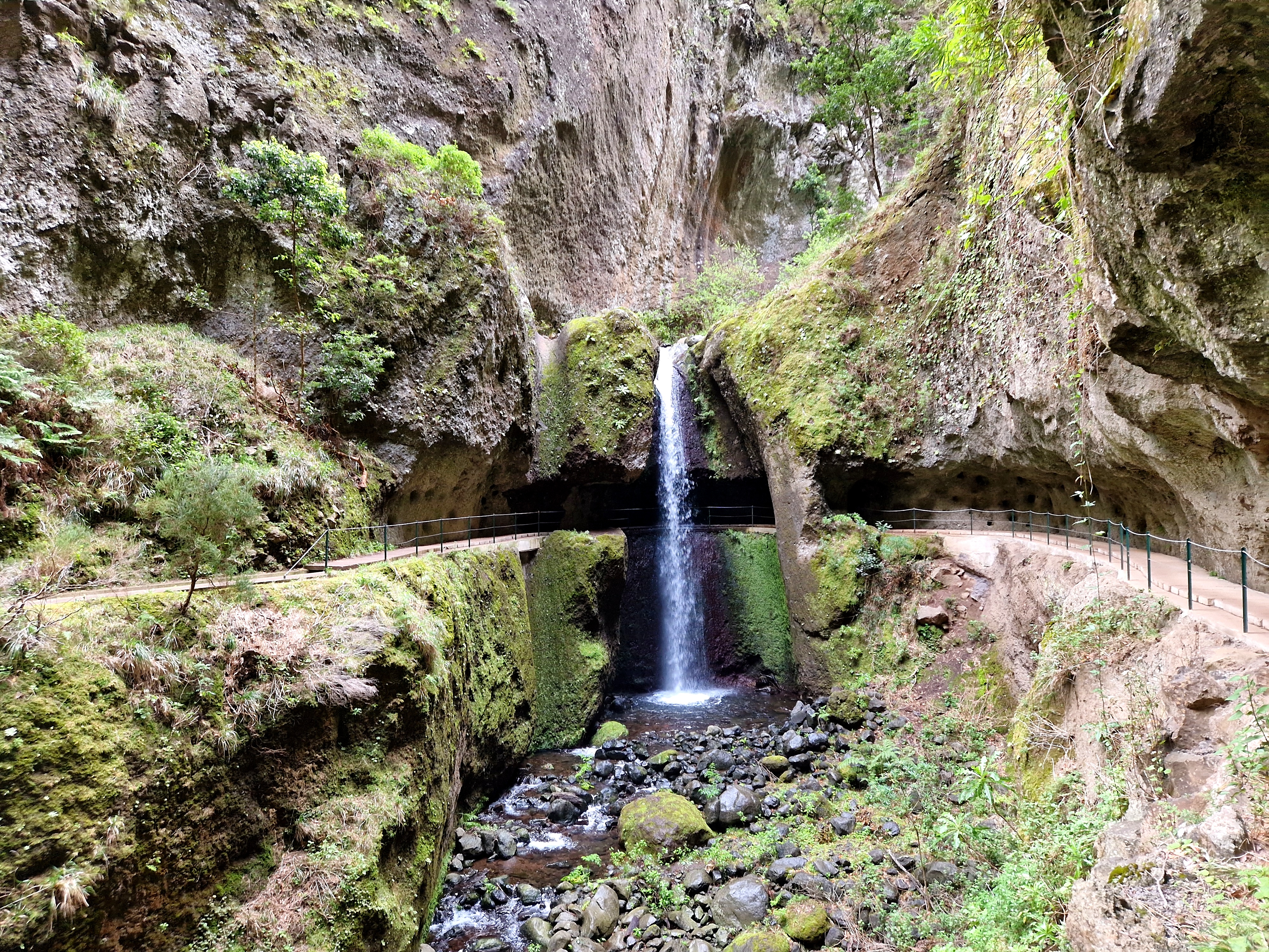 Jen upozorňuji, že pokud se bojíte výšek nebo nezabezpečených cest ve vyšších polohách, tak raději nechoďte po Levada Nova a vraťte se zpět stejnou cestou. Nova je totiž poměrně exponovaná záležitost - pěšinka podél zavlažovacího samozřejmě k dispozici je, ale zábradlí byste tu hledali marně. Bohužel se tímto připravíte o tu největší atrakci - vodopád protékající přímo ve skále, pod kterou budete procházet.